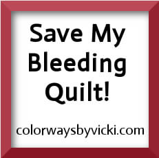 If you have ever had a fabric in your quilt run, you will know how devastating it can be. Vicki Welsh has done a lot of research on this subject. If you click the button below, it will take you her blog where she has complete instructions to remove the excess dye. I know her method works as I have used it with success.